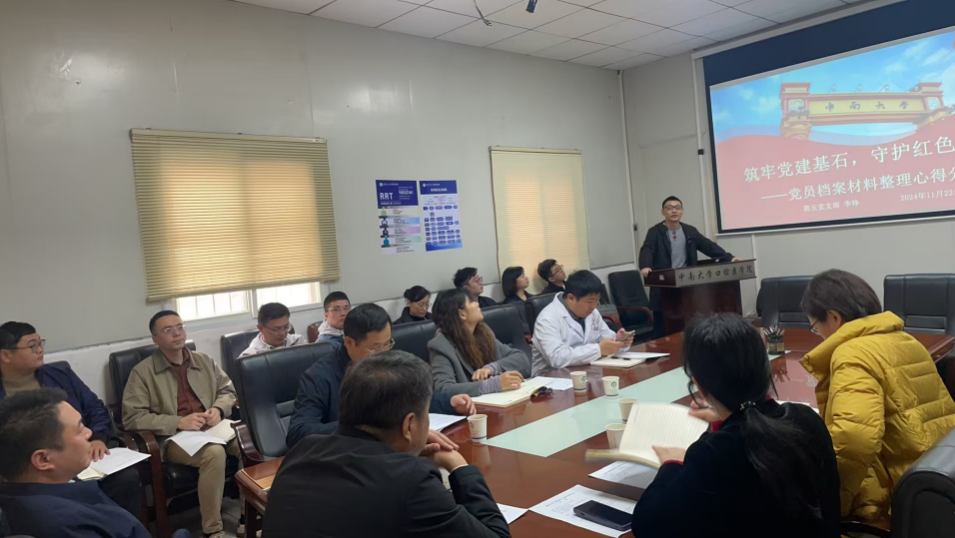 许林勇领学了《中国共产党不合格党员组织处置办法》,并对《关于开展2024年度二级党组织基层党建工作基本情况调研考核的通知》《湘雅口腔医学院(湘雅口腔医院)党支部“五化”建设推进方案》等相关工作进行部署。