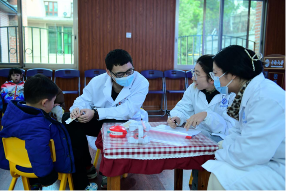 随后,进入到口腔健康检查环节。支部党员同志仔细地为每一位小朋友进行了口腔检查,并认真记录下他们的口腔健康状况。在检查过程中,大家还不忘叮嘱小朋友们要养成良好的口腔卫生习惯,如早晚刷牙、少吃甜食等。小朋友们都积极配合,表现得十分勇敢。
