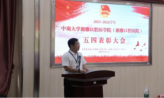 湘雅口腔医学院(湘雅口腔医院)团委积极响应校团委号召,于当日下午举行2023-2024年度院级“五四”表彰大会。大会贯彻党的二十大精神和习近平总书记考察湖南时的重要指示精神,对学院过去一年在共青团工作中涌现出的先进集体和先进个人进行表彰,充分发挥青年典型模范的带头作用,激励全院青年师生勇担重任、赓续奋斗。
