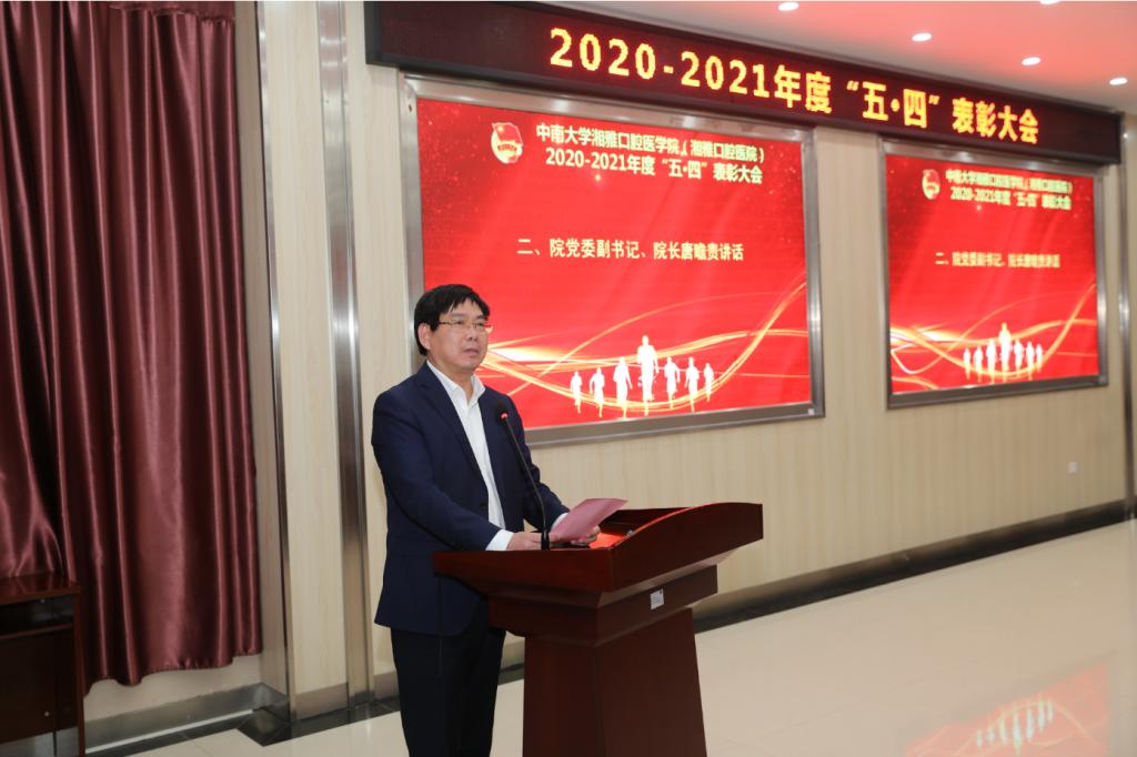 获奖学生代表,院学生会主席欧阳泽楠在发言时说,表彰不仅是一种肯定,也意味着更多期许,新时代青年要把个人的命运同祖国的命运紧密联系在一起,把个人的追求融入全民族的共同理想之中,自觉服务祖国和人民,创造出无悔的青春、永恒的青春。获奖教师代表彭倩在发言时说,要传承发扬伟大的“五四”精神,勇担时代责任、矢志奋斗拼搏、努力建功立业,在医院改革发展的新征程中书写绚丽青春,以优异的成绩迎接党的百年华诞。