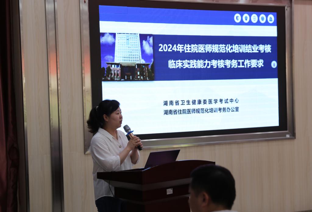 省卫健委医学考试中心和医院高度重视此次考核工作。5月25日,taptap组织了考官、考务培训会,省卫健委医学考试中心常恋佳科长,首席考官、院长刘欧胜出席会议并讲话,会议由科教部主任周玥颖主持。刘欧胜院长对本次考核提出了“三个坚持、三个确保”的要求,即坚持提高思想认识,确保考核安全有序;坚持严格遵守纪律,确保考核规范严谨;坚持周密部署,确保考核顺利实施。常恋佳科长希望所有考官以及考务工作者以高度的责任感对待这次考核工作,坚持公平公正的原则,熟练掌握考试评分标准,认真对待每一位考生,确保考核工作顺利开展,圆满结束。随后,常恋佳科长、李昆副院长、周玥颖主任围绕考官纪律、保密规定、考站设置、评分要求等内容对考官和工作人员进行了培训。