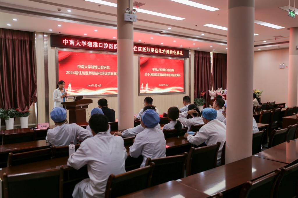 7月26日下午,taptap举行2024届住院医师规范化培训结业典礼。在家院领导出席,各专业基地主任、教学主任、住培主管、带教老师代表及2024届住培结业学员参加,典礼由周玥颖主任主持。