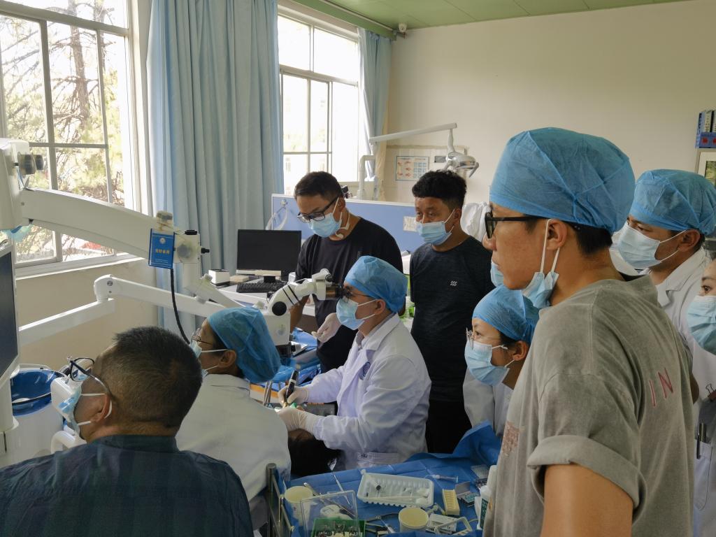 牙体牙髓科主任王祥柱在西藏自治区人民医院给同行做显微根管治疗技术处理器械分离示范