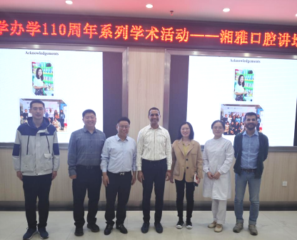 10月23日,“湘雅医学办学110周年系列学术活动——湘雅口腔医学讲坛”邀请日本大学松户齿学院Ujjal Bhawal教授,为师生们带来了一场题为《Explore the intricate cellular signaling pathwaysunderlying periodontal inflammation through abioinformatics-driveninvestigation》的学术报告。