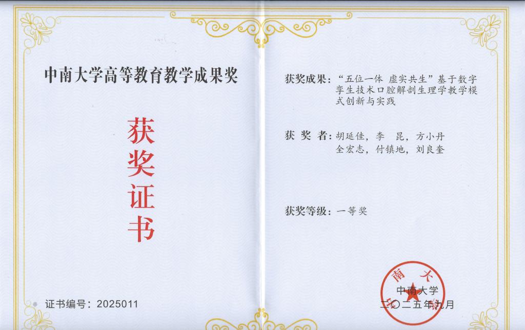 taptap“‘五位一体、虚实共生’口腔解剖生理学教学模式创新与实践”项目荣获taptap教学成果一等奖