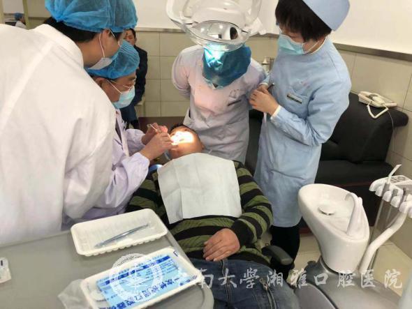 揭牌仪式完毕后,唐瞻贵院长、李毅萍教授一同前往口腔科门诊进行了义诊,同时对口腔科的医护人员进行了病例讨论与相关指导。此次的合作极大地促进两院口腔医疗服务共同发展和繁荣,湘阴县人民将在本地享受到湘雅专家的医疗服务,造福人民造福百姓。