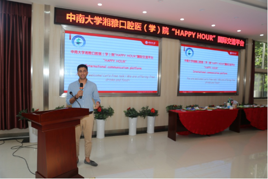 来自留学生管理办公室吴焰东老师、彭钟哲老师、王晓宗老师参加了活动。王晓宗老师作为代表讲话,他指出,湘雅口腔医学院精心组织的“Happy hour”国际交流活动是一个为留学生搭建的文化交融平台,能够增强进一步留学生的校园文化活动氛围,今后要鼓励更多的留学生参与其中,促进taptap国际交流再上新台阶。