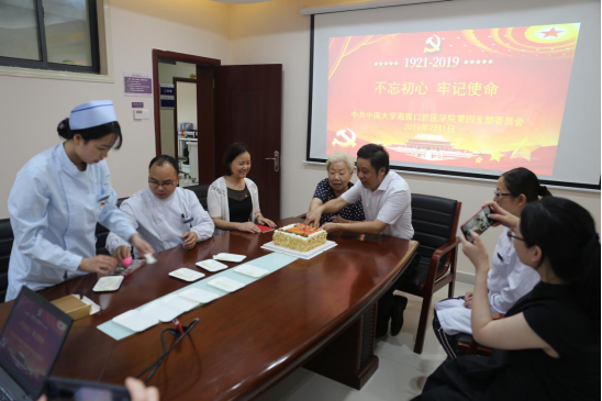 湘雅口腔医学教育创始人之一沈子华教授今年已经85岁高龄,也是一名有着63年党龄的老党员,她受邀来到活动现场为党员们亲身讲述自己的入党故事,重温那段光辉岁月。“现在大家都在讲不忘初心,我是1956年入党,当时新中国成立以后百业待兴,我们那时候的初心就是要向建立新中国的革命先烈们学习,努力工作,把自己的青春献给祖国,全心全意为人民服务。”沈子华教授还回忆起当年创建口腔系的峥嵘岁月,勉励在场的年轻同志在新时代更要守初心、担使命,通过大家共同努力把湘雅口腔医学事业发展得更好。