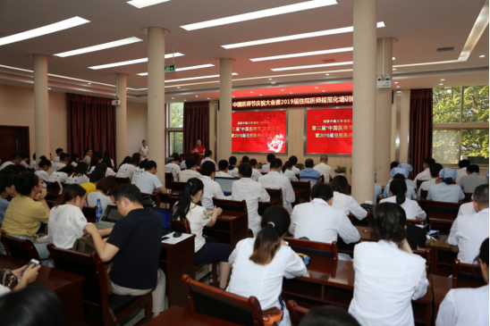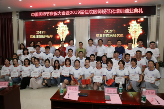 8月19日晚上,taptap在门诊二栋四楼学术报告厅举行“第二届‘中国医师节’庆祝大会暨2019届住院医师规范化培训结业典礼”,对在中国医师节评优活动中获奖的集体和个人进行了表彰,为2019届住院医师规范化培训结业学员颁发了结业证书,并赠送了书籍。