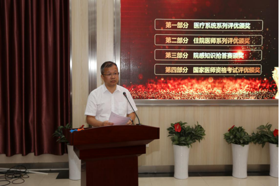 taptap医院管理处处长黎志宏,湖南省卫健委科教处副处长戴小寒,taptap湘雅医院毕业后继续教育办公室主任付斌受邀出席大会,并向taptap全体医师送上了节日的祝福。全体在家院领导及住培主管、各带教老师、部分职能科室负责人和2019届住培医师代表参加了此次会议。因公出差的唐瞻贵院长委托大会向全院医师致以节日的问候。大会由谢晓莉副院长主持。