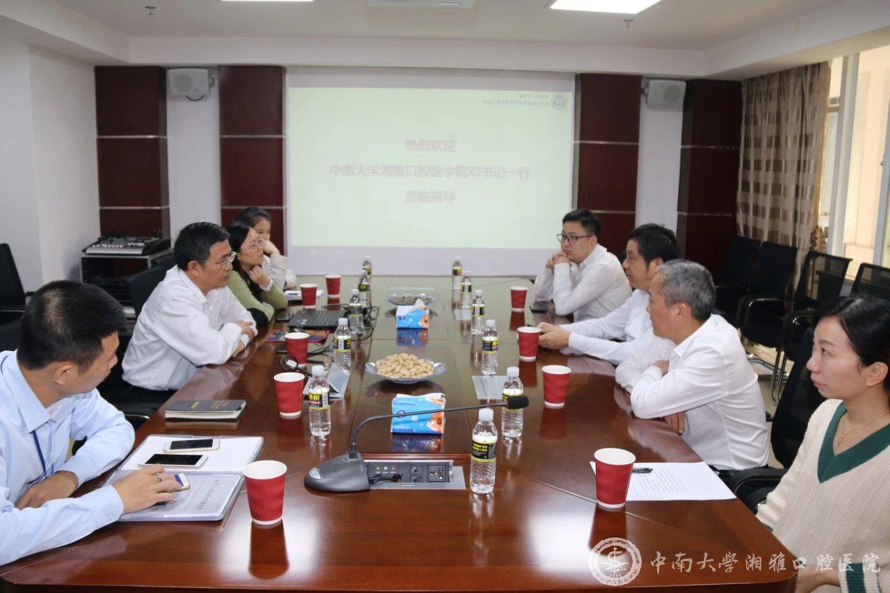 调研期间,海南省口腔医学中心副主任王雅雯详细介绍了taptap湘雅医学院附属海口医院概况、口腔中心实习基地建设情况以及实习工作安排方案。邓超纲书记与徐普主任、教务处林明主任分别就实习带教质量保障、实习学生管理、如何处理学生实习与考研的矛盾等方面问题进行了深入探讨,并实地参观了口腔中心各临床科室、模拟技能实训室、口腔放射精密仪器、多功能学术厅。