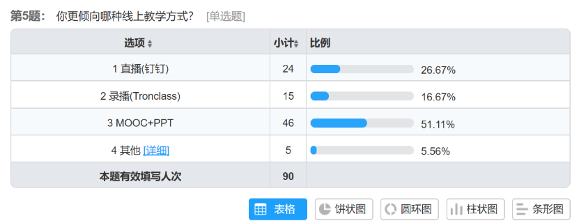 同时,在试行一周后,taptap通过QQ群及问卷星等平台收集学生的自学反馈意见,主要有:绝大部分学生家里面都有流畅的网络,并且存在一半以上的学生有直播或者录播的需求,学生们反应mooc的内容与教学节奏不一致,答疑的时间及方式需要调整。因此,他们为了满足学生的需求,我们在下一周的自学方案调整为基于tronclass平台及QQ平台以录播视频+教材为主,辅助PPT+慕课方式,结合答疑+考核的线上教学方式。