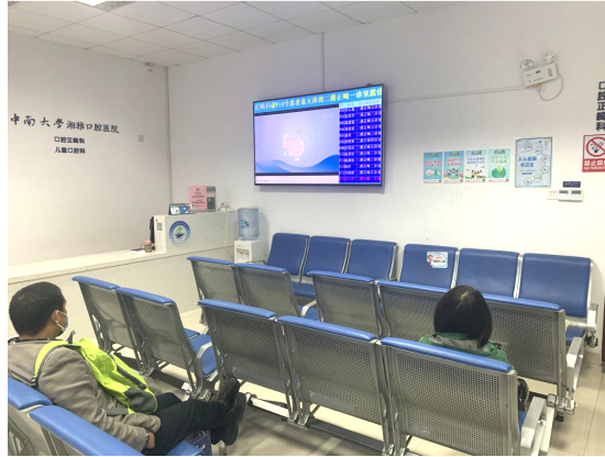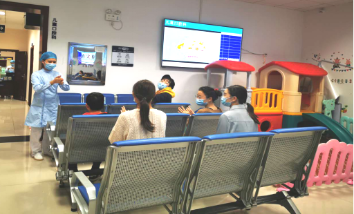(在医院多个电子显示屏上播放“全球洗手日”的宣传主题、营造宣传氛围)