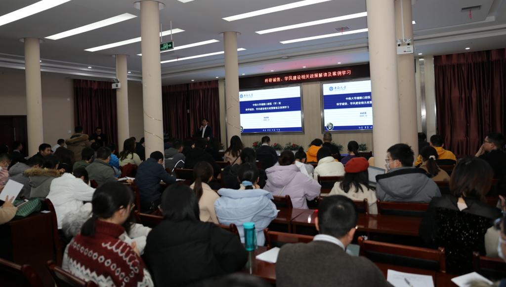 刘欧胜副院长领学了相关文件及制度,重点对学术不端、惩罚措施作了详细解读。期间,他还分享了科研诚信相关典型案例,以此警示学术不端行为发生。