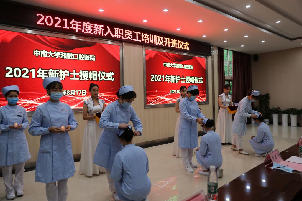 在人力资源部主任李昆的带领下,新入职员工进行了入职宣誓。护理部主任罗姜组织了神圣的护士授帽仪式。