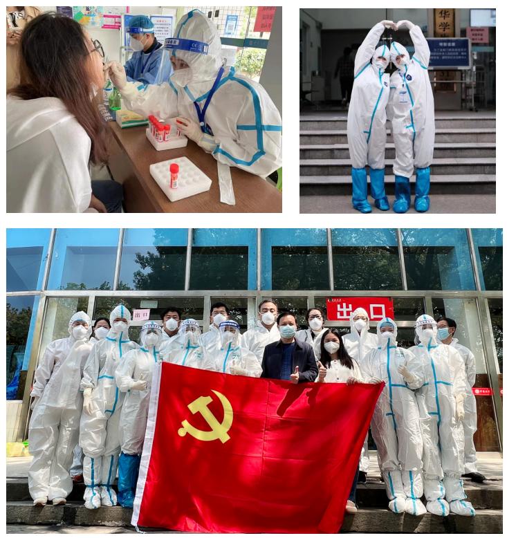 疫情就是命令,防控就是责任。第四党支部联合第三党支部党员志愿者3月22日第一批冲上战“疫”一线,分别到上麻园岭街道、百善台社区、taptap各校区支援核酸采样。多名党员同志发挥连续作战的优良作风,接连数日核酸采样,常常坚持到凌晨。当支委询问党员们是否需要更换调整轮休时,大家都异口同声回答“可以坚持!”。