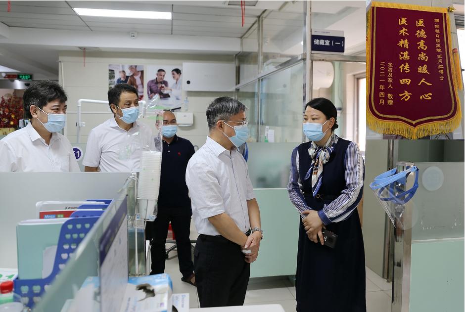 胡旭晟首先来到门诊大厅,在王月红的讲解下,详细了解临床科室环境和业务运转情况,与一线医护人员亲切交谈。