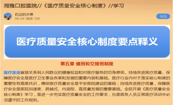 医疗质量安全核心制度知识推送