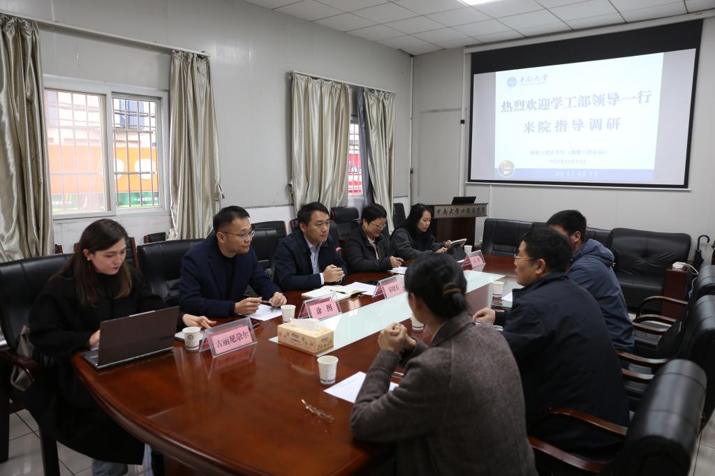 会上,学工部(处)领导一行与学院辅导员还就队伍建设、优良学风创建等方面工作进行了深入讨论。