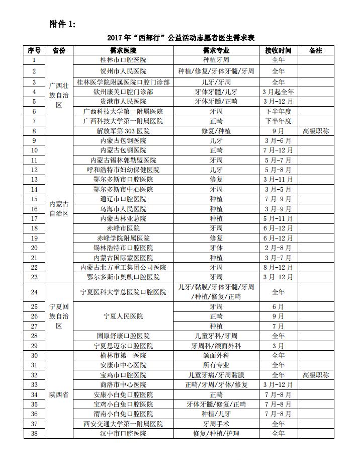 关于组织2017年度志愿者医生参加“西部行”公益活动的通知