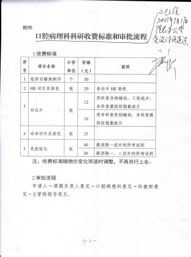 关于对《口腔理病理科科研收费标准和审批流程》公示的公告
